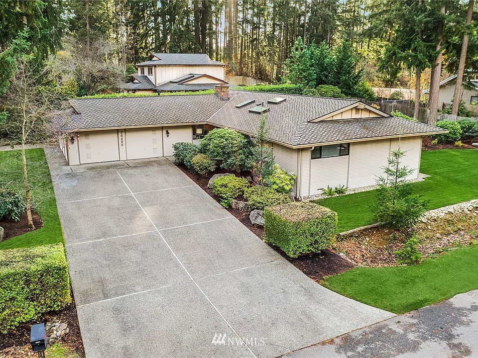 IMMACULATE one story rambler in the highly desired, friendly Briarwood neighborhood in coveted Issaquah school district. This stunning 4-bedroom home has a very large brick fireplace, new carpet, roof, fresh paint and much more! The sprawling floor plan & galley style chefs kitchen opening up too a very large living room with 3 large floor to ceiling windows & gas fireplace gives this home a very spacious feel. Features like crown molding, skylights & hardwood floors extend throughout. French doors open to a very private entertaining area w/ a hot tub & a poured concrete entertainment area that surrounds the home with custom landscaping, perfect for entertaining! VERY large driveway in the front, w/ a secondary RV driveway on the side.