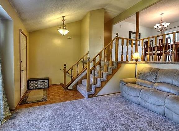 This amazing home offers a bright & open floor plan and has been well maintained throughout! Living room has vaulted ceiling & fireplace. Kitchen has laminate flooring & breakfast area. Finished lower level w/wet bar. Spacious master bedroom features walk-in closet & private bath. Newer updates include - roof, windows, siding and carpet. Shed in backyard stays with the home. Deck overlooks large fenced yard. Convenient to schools & shopping.