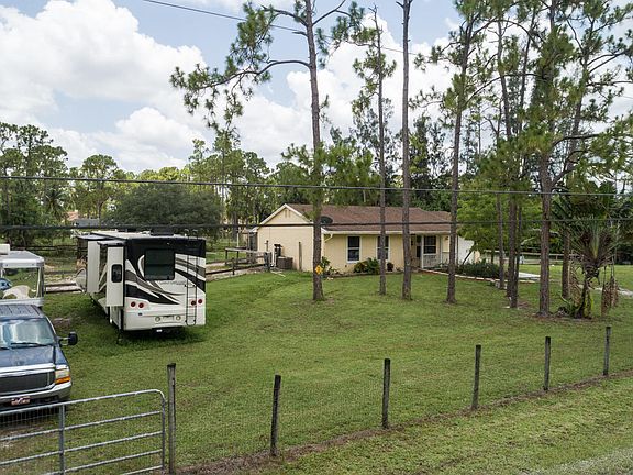 One of the lowest priced homes in Loxahatchee! This charming home is an equestrian lover's dream, boasting 1,200 square feet of stalls with paddocks attached, a 10 x 30 tack room and barn - an amazing opportunity to board horses for extra income. Freshly painted exterior with a fully fenced yard and gated front entrance. AC replaced in 2017. Perfect opportunity for a handyman or investor. Bring your Horses, RV, Boats and Trailers. Live the country life with amenities just 3 miles away, city limits only 15 minutes away. ''A'' rated schools.