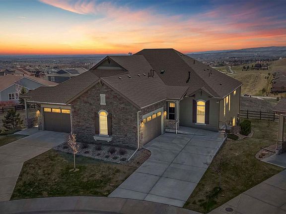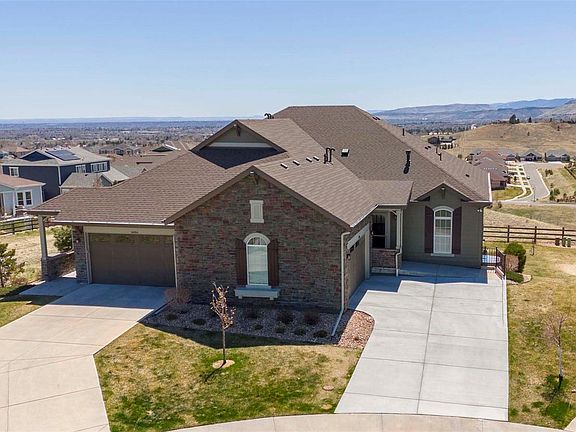 Breathtaking scenery with panoramic views of the North Table Mountain and surrounding Mountains! This beautiful home with a walk-out basement is encompassed in the foothills of Arvada and offers a perfect blend of luxury and comfort. This home welcomes you in with Luxury vinyl flooring to the gourmet eat-in kitchen, quartz counters, SS appliances, convection double oven, and flows into the great room. Get ready to relax in the main level primary bedroom and bathroom with quartz counters, dual sinks, walk-in shower, and walk-in closet with custom shelving right next to the laundry room with additional storage space and utility sink. Enjoy more main floor living with the versatile secondary bedroom that doubles as an office space if necessary. Live worry free with storage space readily available with custom shelving in the mudroom, closets, and lower-level storage room. Head to the basement to find the flexible large recreational room or additional living space, third bedroom, and full bathroom. Bring the entertainment outside with dual access from either the basement or great room! Enjoy outside from above with the picturesque view on the covered balcony, or below on the covered patio with view on the grassed yard and landscaped surroundings. The Leyden Rock community offers an array of amenities, including parks, walking trails, clubhouse with pool, and in between Pattridge open space and Welton Reservoir ensuring a vibrant and active lifestyle for its residents. Nearby routes ensure an easy commute to Boulder/Denver/Golden. Don’t miss this amazing opportunity to own this house in a dream location!