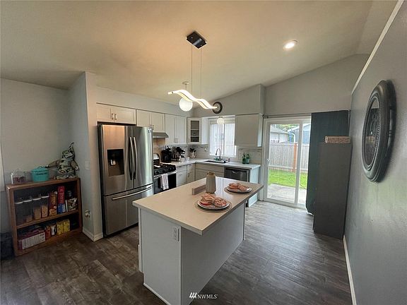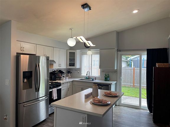 Recently remodeled though-out, this adorable rambler style home lives like new. Upgraded features include huge quartz kitchen island, stainless appliances, soft close cabinetry, deep farm sink, new laminate flooring and updated bathroom. New roof in 2021 and garage door replaced in 2022. Fully fenced back yard offers privacy. Close to Amazon, shopping, parks and trails. Live life conveniently!