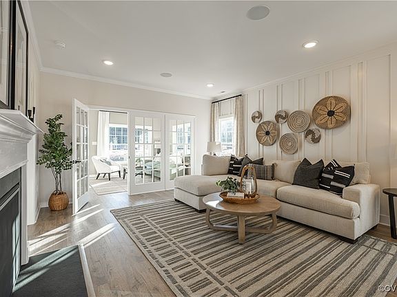 The Villas at Swift Creek is a low-maintenance 55+ community in Chesterfield featuring first-floor living and resort-style amenities. The Vail townhome is an open-concept layout that connects a spacious kitchen with an oversized island and large pantry to the dining area and family room, creating an ideal space for entertaining. A guest bedroom at the front of the home offers privacy with access to a full bath. The first-floor primary suite includes a dual vanity, curbless shower, private water closet, and a walk-in closet with direct access to the laundry room. RevWood flooring extends through the main living areas, primary suite, first-floor guest bedroom, and loft. A sunroom off the family room brings in natural light and provides additional space to relax. Upstairs, you'll find a versatile loft, two additional bedrooms, and a dedicated media room.