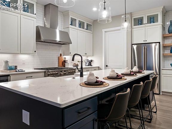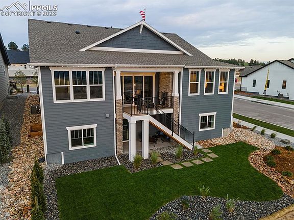 THIS IS A MODEL HOME LEASE BACK FOR INVESTORS TO CLOSE ASAP. This newly developed and largest Alistair ranch plan in Home Place Ranch is an all inclusive, luxury 5 bedroom, 3.5 bath, over sized 2 car garage home with grand 12' great room ceilings, 10' throughout the remainder of the main and 9' basement ceilings with 8' doors throughout the home. This Regal Series home is the pinnacle of Monument, CO living. The open concept on the main is an entertainers dream with the 8 burner GE Cafe series gas range and large hood vent. The kitchen island is includes double sided cabinets for all the needed storage and opens to the massive family room with stone surround fireplace to the ceiling. The basement comes with 2 enormous entertaining spaces and can be set up however you'd like and another 50" electric fireplace PLUS finished wet bar. Luxury vinyl plank with real wood veneer flooring through the main, GE Cafe series appliances, 8 burner dual fuel gourmet gas range/oven with hood vent, soft close cabinets and accent island in the kitchen, quartz counters at all baths, 12"x24" tiles in bath/laundry floors, 5-Piece master bath with freestanding soaker tub plus a massive walk-in shower with dual shower heads, 4"x12" tile backsplash at kitchen, 10' main and 9' basement ceilings, covered rear patio, wood shelving throughout, 50" slimline electric fireplace with stacked stone to the 12' ceilings in the family room, insulated garages and doors with door openers, disc lights, customized under cabinet task lights in the kitchen, black fixtures throughout, 8lb Napa carpet padding, beverage center at the wet bar in the basement, 50" slimline electric fireplace in basement, double sliding rear doors and the list goes on. The Alistair is the definition of luxury with ample space while allowing life to be lived and recreated in beautiful Monument, CO.