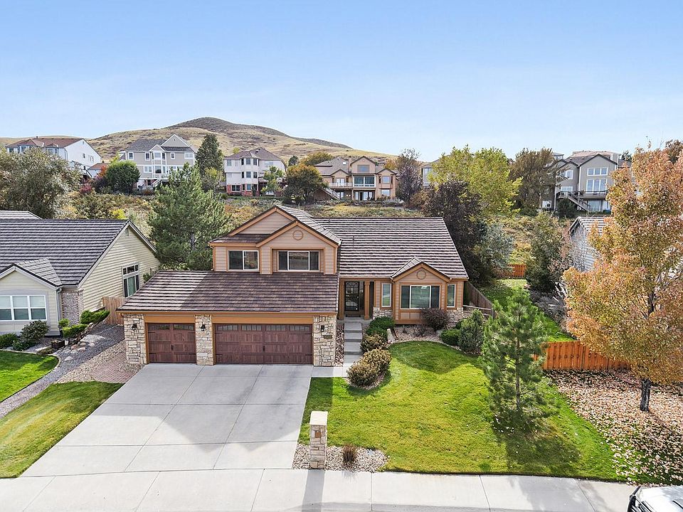 Beautiful custom home in Mesa View Estates. This amazing home has beautiful style, custom finishes & upgrades throughout. An open floor plan features vaulted ceilings, oak hardwoods expanding the main level & a large living room & full dining area filled with natural light. A newly remodeled gourmet kitchen with upgraded appliances, stone counter tops, eating area & don't miss the remote rain-sensing skylight! The lower level has an expansive family room w/ a tile gas FP, views of the open space behind, office/4th bedroom, upgraded bath & laundry. Upstairs, a master suite with custom five piece bathroom, Jacuzzi tub & tile shower, walk-in closet & additional remote skylights. Don't miss the 2 additional large bedrooms & updated full bathroom. Walk outside & enjoy the fall evenings on the three tier Sequoia Redwood deck with remote shades & awning. This home has been fully updated from fixtures, windows, garage doors, paint, roof, gutters, HVAC & much more. A rare find in Mesa Estates