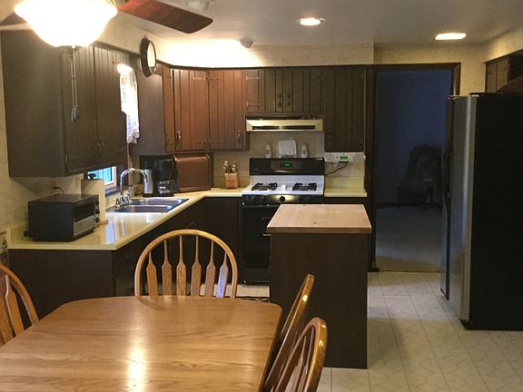 Nice house in a quiet road. It has a beautiful sunroom with a wood burning stove and sliding glass doors. Four large bedrooms. The master bedroom has a large closet and a full bathroom with a shower. The kitchen is large with an island. The living room and dining room are big as well. The family room has a wood burning fireplace. New windows.home has just under an acre. Well and city water sewage and gas.