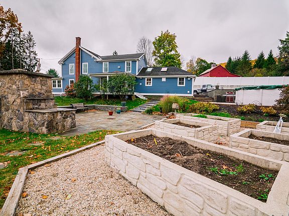 A totally refurbished Center Hall Colonial which still retains some of the character of the 19th century. A list of the amenities includes a large cook's kitchen with top stainless steel appliances, adjoining dining area, pull down projector screen and projector, first floor master suite, 4 bedrooms, 3 full baths, new siding, whirlpool tub, open shower, a number of raised flower beds and glass enclosed patio. One of the 2 car garages currently houses a person-cave (24 x 21) but could just as easily be used as a garage again. Another 2 car garage is located on the lower part of the property with a workshop/studio/artist's office overhead (21 x 31). Located just across the road from the Canaan park. Close to Queechy, your choice of ski resorts, the Berkshires.