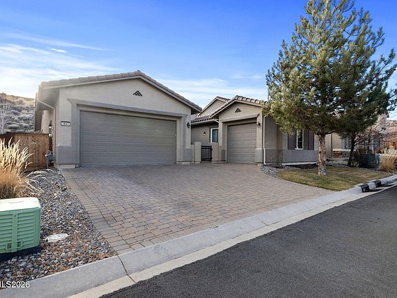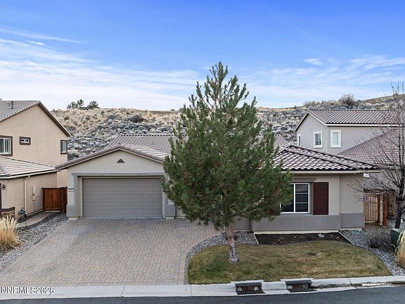 Set in the desirable Crescent Pointe area of Northwest Reno, this spacious home puts you minutes from shopping, dining, parks, and easy freeway access while surrounded by beautiful mountain views. Offering 2,666 sq. ft., this 4-bedroom, 2.5-bath property gives you room to live, work, and entertain. Enjoy a cozy fireplace with a blower that pushes warm air through the home, plus a rare slider in one bedroom for added light and courtyard access. The kitchen shines with a double oven, ideal for holidays and gatherings. Outside, mature trees, seasonal flowers, and a manageable yard create comfort without heavy upkeep. Need space for toys or projects? The 3-car garage is a dream. Washer, dryer, and refrigerator are negotiable, and the extra fridge in the garage can stay. Homes in this sought-after Northwest Reno neighborhood move fast—come see it today!