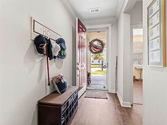 Welcome to this beautifully updated 3-bedroom, 2-bath ranch home in the highly sought-after community of Emmens Preserve at Market Common. This ranch style home offers a spacious open floor plan with vaulted ceilings, a cozy fireplace, and hardwood floors throughout the main living areas. The kitchen features granite countertops, stainless steel appliances, a breakfast bar, pantry, and custom pull-out trays for added convenience. Thoughtful upgrades set this home apart, including: an enclosed lanai with tile flooring and blinds (2024), storm shutters, Llumar hurricane protection window film, Pela storm door, enhanced insulation and air sealing, whole-house surge protection, attic fan with pull-down ladder access, garage overhead storage, and a professionally sealed driveway and garage floor. Additional highlights include a Murphy bed, under-cabinet and ceiling lighting in the kitchen, solar lights in the bath and kitchen, Ring cameras with flood lights, Curbscape landscaping, drainage improvements, and custom concrete walkways and pads in the backyard. Enjoy the convenience of Market Common living, with shopping, dining, and the beach just minutes away, all while benefiting from a community that offers a clubhouse, pool, and walking trails.  Don't miss your chance to own it!