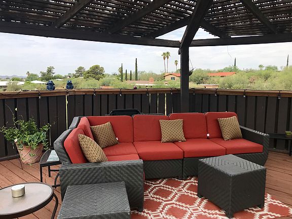 Premier hilltop location with fabulous views in all directions. Upgrades complementing the charm of original home. Granite counter tops, Newer tile, carpet, paint, Pella windows, top-of-the-line Trane ac with whole house air filtration, and new gas line to house. Open concept main living area combined with attached patio/pool/deck totals over 5,000 square feet and produces a resort-like atmosphere throughout. Lower walk-out guest quarters perfect for parents or as potential income producer. Ocotillo shading wraps most of house and huge west patio covering prevents afternoon heat. Private deck off master bedroom faces the spectacular Santa Catalina's. Come get lost in the never ending views of the wildlife and sunsets!
