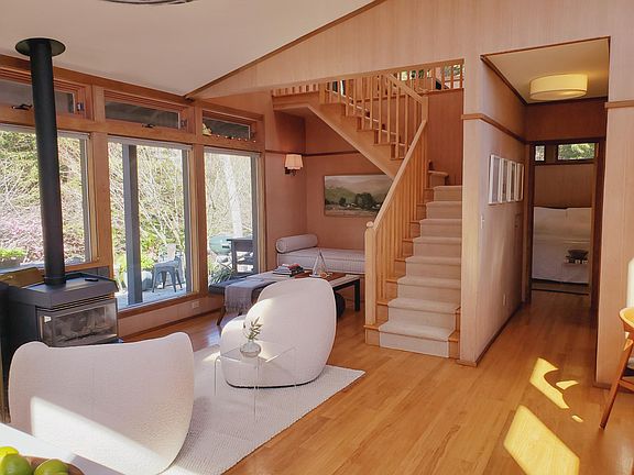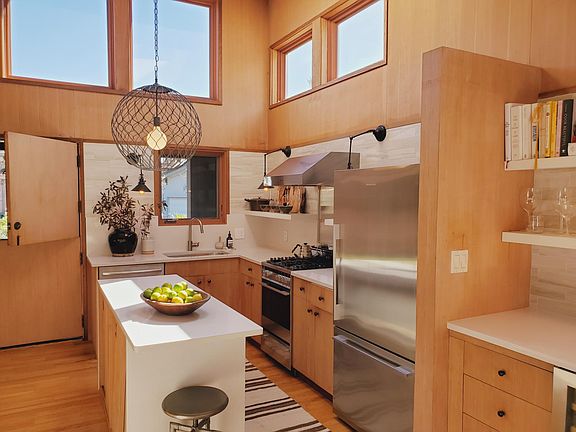 Enjoy a peace of paradise in this one of a kind, two bedroom two bath home boasting vaulted ceilings and expansive windows offering endless private views of the garden and seamless natural lighting. Upon entering through the Dutch door, you'll be welcomed by wood floors throughout the downstairs, cozy built-in reading nook, kitchen providing ample counter space, rustic lighting and large kitchen island. Top rated, built-in wine fridge for convenient storage and quick access for enjoying your glass of wine by the cozy gas fireplace or outside on the private terrace overlooking the garden. Upstairs you'll find the loft bedroom, second bathroom and a balcony over looking the tree tops. While the backyard garden provides for relaxation, the front yard is an open book and gardener's paradise with multiple raised flower beds and already blossoming herbs and fruit trees. The garage has been converted to an additional space for a home gym, craft room or home office while still maintaining the beautiful views of the garden. There is ample storage, full size washer and dryer and a driveway large enough for four parked cars. Easy freeway access with just a short drive to downtown Berkeley. One dog OK with owner approval and additional deposit. Gardener included on bi-weekly basis. Sorry no smoking is allowed in the home. Apply online at bshpm.com Gardener included. Pets ok with additional deposit