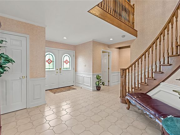 Deerfield Manor’s Classic 2-story Brick Colonial. Welcomed by a grand open foyer, curved staircase, sunken living room and formal dining area with crown molding. Spacious gourmet kitchen, cherry cabinetry, granite counters & tons of natural lighting that overlooks the rear deck that spans the entire width of the home. This home features a family room, coffered ceilings, fireplace & wet bar. A home office that is nicely positioned with a fireplace to comfort your day. The Owner’s suite has a separate sitting room, large bath & jet tub. A Jack & Jill bath compliments 2 ample-sized bedrooms. A loft area for all your imagination. Storage galore; either upstairs or in the lower level. A finished game room awaits, built-in bar area, fireplace, half bath along with a large storage/workout room. A 3-car garage, EV ready. Tons of natural lighting, nice sized yard with patio and a great walking community! Easy access to I-79 and all the shops that you can imagine.