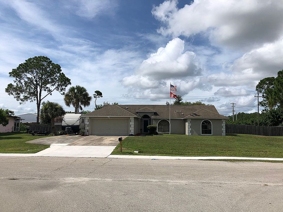 NEW ROOF COMING SOON!!!!!!!!!! Do not miss out out on this beautiful 3/2/2 in the center of a double lot with screened in pool. Updated flooring throughout. Updated kitchen and both baths with granite countertops and new tile in showers. Split floor plan and open concept with plenty of room to entertain. The two skylights allow for tons of natural light in kitchen/family room and spare bath. Huge fenced in yard for the kids and animals to play with two sheds for ample storage. Side driveway gives room for boat or RV parking and has 30Amp service. AC replaced in 2017 and water heater in 2019. Hurry before this one gets away!