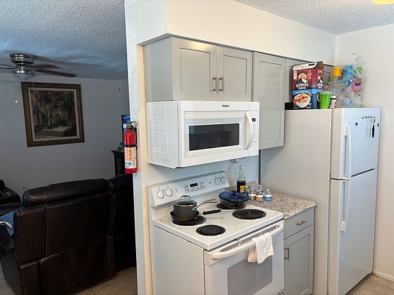 New wood cabinets with quarts countertop. New granite sink in bath new tile. New hurricane windows in front. Washer and dryer I'm unit storage shed with lawn mower