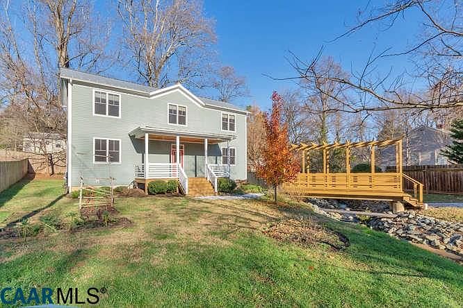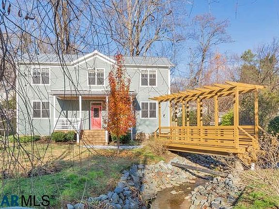 Handsome 3 BR, 2.5 BA house conveniently located on 1/4 acre lot in popular Fry's Spring neighborhood. Looks like a traditional farmhouse on the outside but contemporary & open inside! Custom-built in 2010 by Latitude 38, this Energy Star/Earthcraft house features 9' ceilings, solid maple & natural slate flooring, solid wood doors and stunning wood walls. Open kitchen/DR design with large concrete countertop island perfect for entertaining family & friends. Other features: dual zone heating/cooling system, welcoming front porch, off-street parking, and large shed/workshop in the backyard. Unique features include front walkway w/ wooden bridge over small creek. Walking distance to UVA & the Medical Center, ride the bus/trolley to Downtown.