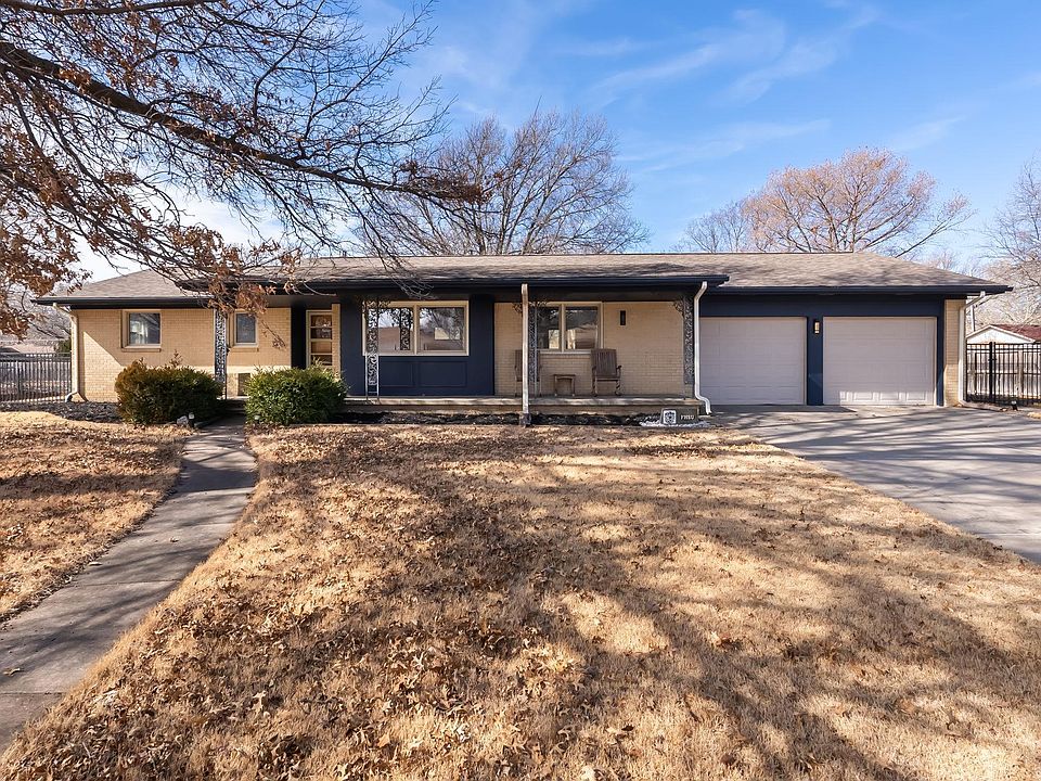 Welcome home to this extra clean, recently updated 3bed/2bath/2car ranch on a huge .45 acre lot in west Wichita. This home has had so many upgrades, that it's hard to list them all! As you arrive, you'll notice the large covered front porch, mostly brick exterior with new siding accents, fresh exterior paint, splendid mature trees, and excellent curb appeal. This home is completely move-in-ready, offering both the charm and character of its era, but also well-though-out updates. Inside the home, you find fresh interior paint, new flat ceilings, new white trim in most rooms, new contemporary fixtures and fans, and new or refinished flooring throughout the entirety of the home. Inside the front entry, you'll discover a brand new hexagon-tiled entryway. This leads directly into the spacious formal living/dining room with stunning hardwood floors, window seats, and built-in display shelving. The kitchen is one of the stand out features of this home. It's been completely remodeled with incredible butcher block counter tops, new subway tile back splash, newly painted cabinets, new range, and new XL undermount sink and fixtures. An adjacent breakfast nook overlooks the enormous back yard and the family/rec room, which features a built-in TV mantle, stone-faced fireplace, and impressive new laminate flooring. Just off the breakfast nook is the large laundry/storage room, leading into a brand new bathroom with extraordinary tiled shower, modern vanity, and chic fixtures. The master bedroom is spacious and bright with a walk-in closet, additional built-in storage, new decorative accent wall, and new fan. The 2nd and 3rd bedrooms have been stripped of wall paper and painted - the only thing missing here is the trim! A second full hall bath with extended vanity and shower/tub combo completes the main floor. Downstairs, you'll find an enormous amount of storage or finishable space. Mechanical upgrades include replacement windows throughout, high efficiency Trane HVAC system, extra insulation, updated roof (2015), updated electrical, and updated plumbing. Outside, you'll find a fully-fenced yard with sprinkler system and irrigation well, partially covered rear patio, raised planting beds, extra long driveway, and insulated garage with extra deep bay. This home sits in a quiet neighborhood with easy access to highways, restaurants, and parks, and has no special taxes. This is one of the nicer listings in this price range we have seen in awhile. GO SEE IT BEFORE IT'S GONE! *See the promo video for additional views of this home.*