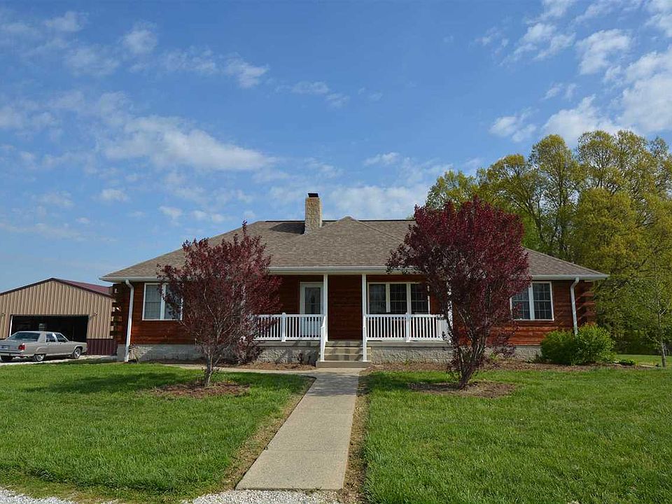 Here is your chance to own a home on OVER 10 ACRES near Ireland! This 1800 sq.ft. log home built in 2007 has a split-level floor plan with 3 bedrooms and 2 bathrooms. The spacious living room is open to the eat-in kitchen. The master suite features a full bathroom with double bowl vanity and walk-in closet. In the basement, you will find 9' ceilings, a rough-in for a full bathroom, and double doors out to a patio with hot tub. In addition to the electric furnace, this home has a wood-burner plumbed into the duct work, which can be a great money-saver! If you want more garage space, you will love the 30' x 40' detached garage with concrete floor with drain. Enjoy time with friends and family gathered around the fire pit in woods. This is an incredibly rare property. You don't find an opportunity like this often!