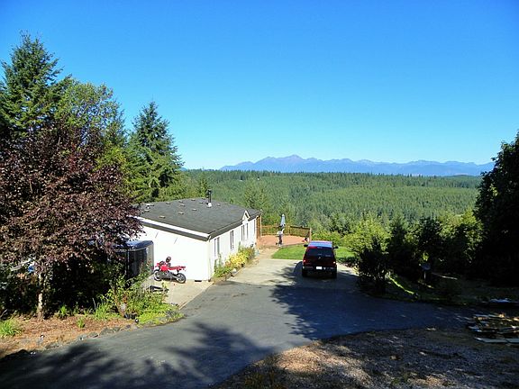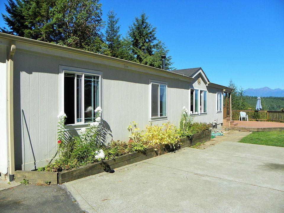 Welcome Home to this large triplewide on 2.6 acres w/Panoramic Views of the Olympics. Great floor plan w/beautiful laminate floors, vaulted ceilings, and rounded corners. Large kitchen with walk-in pantry & breakfast bar, living room & dining area w/ wood stove, dining room, large family room. Master suite with walk-in closet & master bathroom w/soaking tub. Large deck w/covered area. Gated entry with upper portion of property fully fenced. Large shop w/power. Shed. Beautiful landscaping.