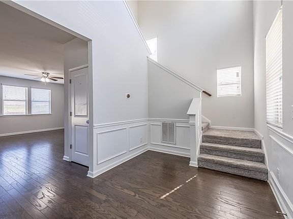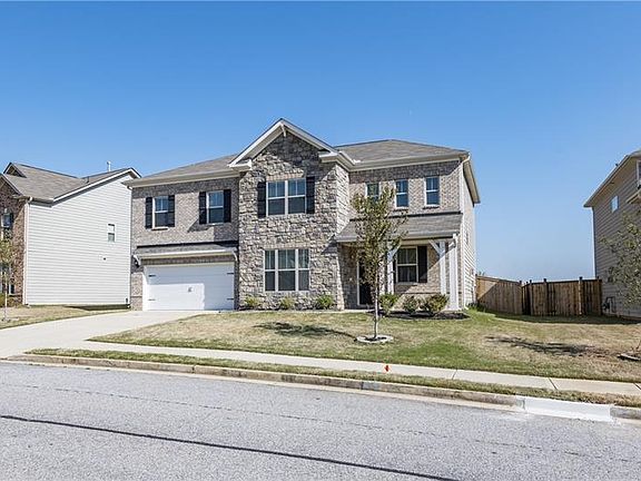 Gorgeous like new smart home in beautiful Embassy Trace. The main level features a breathtaking two-story foyer, a flex room that could serve as a home office or formal dining room and a bedroom with an adjacent full bathroom. The expansive open floor plan is perfect for entertaining with its large gourmet kitchen featuring a huge island, granite counters, stainless steel appliances, breakfast nook and spacious pantry. An oversized great room/loft area welcomes you to the second level which also contains the owner's retreat with an incredible view, spa like bath and huge closet. Two generously sized bedrooms, the 3rd full bathroom and a full-size laundry room complete the upstairs living area. Outdoor lovers will enjoy privacy in the large fenced-in level back yard that overlooks open greenspace and a nearby walking trail. Conveniently located less than 15 mins to Hartsfield-Jackson airport, 30 mins to downtown ATL with nearby highways, shopping, dining, schools and entertainment.