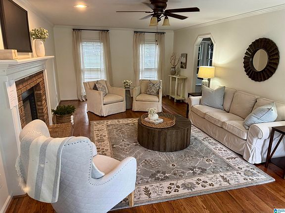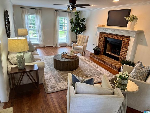 NEW PRICE! This charming home features REFINISHED HARDWOOD floors main level, FRESH paint, and a spacious layout perfect for both RELAXATION and entertainment. Highlights include many things like NO CARPET throughout, a spacious den with brick fireplace in the heart of the home and an UPDATED kitchen with island, stone countertops and a pantry for extra storage. The laundry closet with shelves is conveniently located in the kitchen. ENTERTAIN in the dining room or outside in the IDEAL outdoor living space with beamed ceiling and media wall. The MASTER RETREAT is generously sized with plenty of room to unwind and for furniture. The master bath has relaxing soaking tub, two closets, dual sink vanity and a SERENE shower. Two other bedrooms with ample space and a hall bath complete the upstairs. A VERSATILE bonus room in the basement-media room, second den, gym, playroom-whatever you need! A two car garage and fenced yard which is ideal for pets or outdoor gatherings!