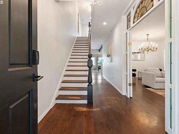 Perched high above the city in the coveted SW Hills, this stunning turn-of-the-century home seamlessly blends historic charm with modern sophistication. From the moment you step inside, you're greeted with panoramic views of the Portland skyline and the Cascade Range—Mount Hood, St. Helens, and Adams on full display from multiple rooms.An entertainer’s dream, this expansive home offers three family rooms, perfect for hosting, relaxing, or creating your own private retreat. The top-floor bonus space opens to a breathtaking 180-degree view roof top balcony—your own secluded perch above the city. The light-filled kitchen beautifully updated in 2021, was designed for both function and wow factor, featuring sleek finishes and postcard-worthy views from nearly every angle. The primary bedroom also featuring amazing views, has a walk-in closet as big as a bedroom and connects to the recently remodeled bathroom. On the same floor you’ll find another bedroom with one of the four fireplaces and an outdoor balcony situated to enjoy the morning sunshine. Downstairs in the finished basement is the third family room that could easily be converted to a workout room, game room, or movie theater; the options are endless. Historical architectural details such as a grand staircase, tall ceilings, and original millwork give this home timeless elegance, while thoughtful updates throughout offer modern comfort and style. Only minutes to downtown Portland, Providence Park, and the Pearl with quick access to the West Hills and to the freeways offer amazing convenience. Whether you're dining al fresco on the balcony or enjoying the sunset from the rooftop balcony this home captures the essence of Portland living. [Home Energy Score = 3. HES Report at https://rpt.greenbuildingregistry.com/hes/OR10007600]
