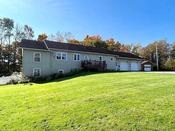 Wonderfully scenic, 3 bedroom, 3 bathroom home just minutes from Jay Peak Ski Resort offering beautiful sunrises and spacious, 4.2 acre lot. Built in 2001, this ranch offers a gracious open floor plan with a fully applianced kitchen, dining area with access to the 12'x8' deck, living room and additional family room with panoramic windows allowing for tons of natural light. Making up the rest of the first floor is a primary bedroom with walk-in closet, an additional bedroom, full bath with double vanities and W/D hookups, a 1/2 bath and a small entry way. Always wanted to do an Air B&B? The lower level finished area with separate entrance if desired, offers a large kitchen/dining area, family room with walk-out basement to the front yard, a 3/4 bathroom and plenty of storage! Additional features include updated appliances, newer hybrid hot water heater, flooring and more! The exterior boasts a fenced in yard ideal for pets, children or gardening, easy-to-maintain vinyl siding, 32'x26 attached, 2-car garage with auto-openers, an additional outbuilding ideal for storage and awesome, long range mountain views! Located just a short drive to Jay Peak Ski resort. Vermonts premier, 4-season resort!