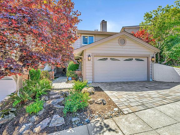 Awarded Outstanding Home in Sugarloaf by the City of San Mateo in 2018, 1641 Toyon Court is where style meets scenic natural surroundings. Upon arrival, admire the paver walkway and private entrance. Inside, you will be greeted by sunlight streaming through the bay window and expansive sliding doors that lead to a thoughtfully landscaped garden amid Laurelwood Open Space. The modern kitchen has high-end appliances, quartz counters, and a breakfast nook that flows nicely into the main living space, a separate formal dining area and guest bathroom. Directly upstairs is an open loft/home office/4th bedroom, complete with a built-in wall system and a birds-eye view of the living room. Nearby are two bedrooms sharing a bathroom. The primary suite has a view balcony, walk-in closet, and private bathroom with a jet tub and shower - all in desired climate control comfort. HOA amenities are popular tennis and pickleball courts. Uniquely, you will be in the coveted Belmont School district.
