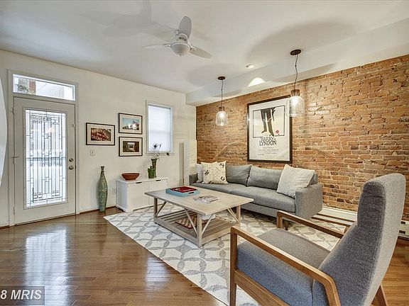 Charming federal end unit row house w/abundant light in prime location. Open floor plan w/exposed brick, unique built ins and 3 skylights. Updated kitchen w/stainless apps & counters, high end bathrooms, ample closets. ALL NEW SYSTEMS+solar array on roof=efficient,green living. Front porch overlooking cute garden+off-street PARKING in rear. .5mi-metro, .4mi H Teeter, .5mi-TJoe's. OPEN 5/20 1-4.