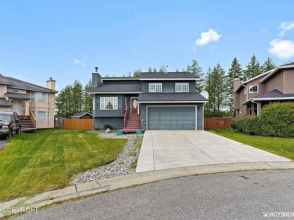 This updated stunning South Anchorage home features 3 bedrooms, 2 bathrooms and two spacious living areas. The custom-designed kitchen boasts quartz countertops, stainless steel appliances, a farmhouse sink, and engineered hardwood flooring. Thoughtful upgrades throughout include a concrete driveway, high-efficiency furnace, on-demand hot water heater and composite front deck.Outside you find a charming backyard playhouse, plus a generous 12x18 storage shed. Don't miss your chance schedule your showing today!