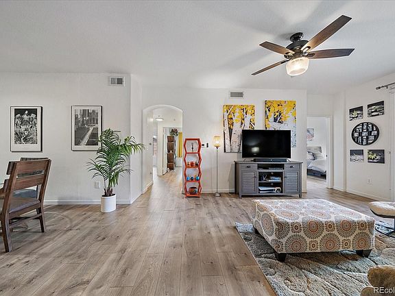 Welcome to this charming and cheery condo in the attractive Pinnacle at Highline. As soon as you walk in you will notice the open floor plan and the pride of ownership in this home. Laminate wood plank flooring extends throughout the dining room, living room and bedrooms of this home giving it a spacious and cohesive feel. The kitchen and appliances were updated in 2019 with newer AC, water heater, tub and showers updated in recent years. Lovely maple cabinets, updated hardware, stainless appliances and full size washer room are just a few of the noteworthy amenities of this comfortable home. Step out your front door to the Highline Canal where residents enjoy immediate access to trails, biking, and daily walks around Writer’s Vista Park and McLellan Reservoir to embrace the Colorado outdoors. The one-car detached garage and two reserved parking spaces provide ample parking. The outdoor patio off the living room is the perfect spot to unwind after a long day. The community amenities include a pool and fitness center and the popular Littleton location offers close proximity to major highways, Aspen Grove Shopping Center, light rail, local breweries and historic downtown Littleton all within minutes. This home has so much to offer, including the highly coveted Littleton Schools, you won’t want to miss seeing it for yourself!