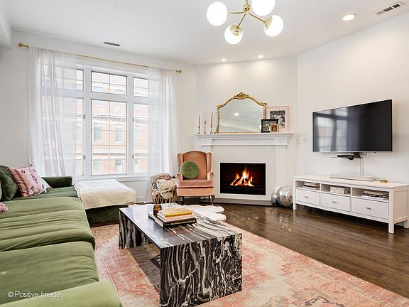Perfectly situated in a boutique elevator building, this EXTRA-WIDE 2 bedroom / 2 bathroom home is spacious, sophisticated, and stylishly updated. This move-in ready unit is complete with newly stained hardwood floors, an updated gas fireplace, and oversized windows that fill the home with natural light. The expansive open concept floor plan is ideal for entertaining a party of any size with plenty of room for a full formal dining room set. The modern kitchen with white cabinetry and updated custom hardware, quartz countertops, tile backsplash, and plenty of storage space. The primary suite features a large walk-in closet and an updated, en-suite spa bath with double vanity and walk-in shower. Off the primary suite is the beautiful and large outdoor space which is perfect for enjoying warmer Chicago months. The spacious second bedroom can be used as a guest room, storage, or home office. This home features a large pantry, smart thermostat, additional storage room and in-unit washer & dryer. ONE PARKING SPACE IS INCLUDED in the price, as is living in such a prime location! You have fast access to 90-94, and the Division or Damen blue line stops. Moments from Jewel Osco, the Milwaukee strip in Wicker Park/Bucktown, all of the restaurants, nightlife, 606 running/biking trail and the amazing Wicker Park.