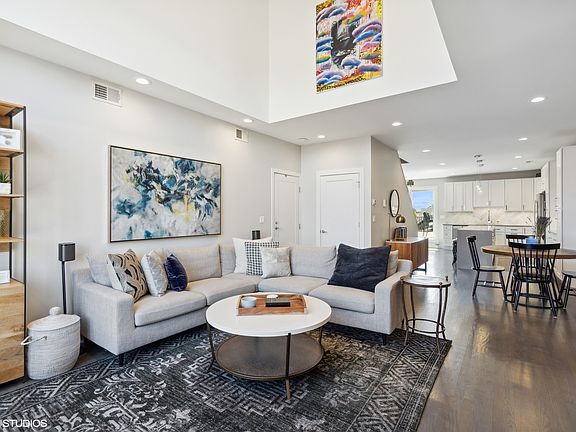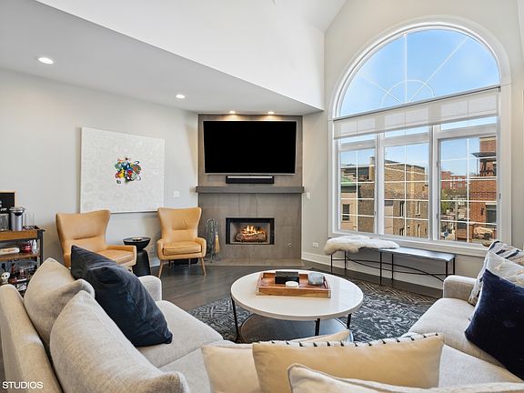 OPEN SCHEDULED FOR JUNE 3rd FROM 10:00 to 12:00 HAS BEEN CANCELLED. SELLER HAS ACCEPTED AN OFFER. WE APOLOGIZE FOR ANY INCONVENIENCE. Stunning 4 bedroom / 3 bath penthouse duplex up in boutique Bucktown elevator building. This home takes up the entirety of the top floor and features a private recently renovated 1000 sq foot terrace with unreal skyline views. Nearly every inch of this home has been updated with designer details and finishes making it a truly show stopping space. Soaring cathedral ceilings welcome you into this light filled space featuring hardwood flooring throughout. A formal living room space with gas fireplace opens into your pristine chef's kitchen with high end SS appliances, white quartz countertops, custom cabinetry and abundant storage. From the kitchen, step out onto your newly updated and completely private outdoor terrace complete with Trex decking plus turf, gas fire pit and some of the best skyline views in Bucktown. Two spacious bedrooms complete the first level, including the primary with a large ensuite primary bath and two custom built out closet spaces. The top level features two enormous additional bedrooms that can be used as either office space or additional living space. One deeded exterior parking space and a huge interior storage space is included in the price. A truly amazing location within walking distance to the 606, multiple parks, and the shops and restaurants of Bucktown with easy access to the highway and the Blue line. This highly updated penthouse home with a truly show stopping private outdoor terrace is one of a kind and sure to amaze.