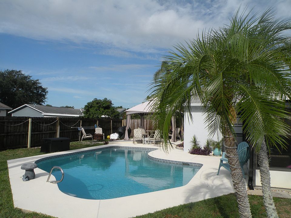Status: Sold Reluctantly relocating from our little piece of paradise. Just minutes from the beach. Our home is move in ready and features a beautiful pool with a screened in lanai for those lazy afternoon naps. Interior Features: Split floor plan with an updated kitchen with two pantry's, two dining rooms, recessed lighting, new refrigerator, microwave and garbage disposal. Master bedroom with an on suite and walk in closet. Two guest bedrooms with a newly remodeled guest bathroom. New hot water heater, washer and dryer in the garage. Recessed lighting in the two car garage. Exterior: NEW ROOF (June 2018) Newly resurfaced pool with a custom fit solar cover and freshly painted deck. Corner lot with a screened in lanai and privacy fence. Well for the sprinkler system.