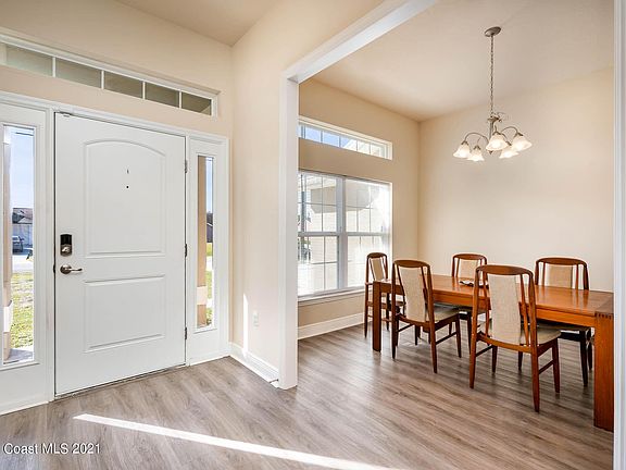 Built in 2019, ready for new owners. Offering over 2100 Living Square feet, this is a wonderful 4 Bedroom / 2 Bathroom open floor plan home with large Great/family area plus living area (could be easily made into additional bedroom/office) and separate dining area! Centrally located kitchen overlooks breakfast nook, Great room and has large walk path to dining area. Large master suite: Double sinks, shower sep tub, and walk in closet, Nice 26.7 x 7.3 Lanai for outdoor entertaining. Updated Luxury Vinyl in living & Kitchen areas, double pane windows & storm shutters, Home Team Pest Defense system in place. Plenty of windows provide amazing natural lighting. Quick access to St.Johns Heritage Parkway.