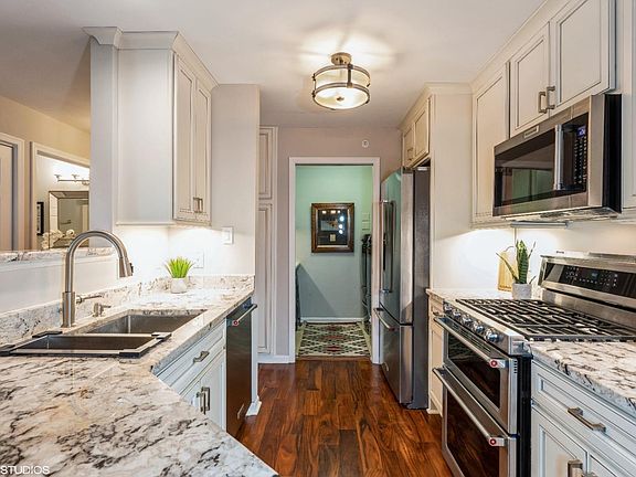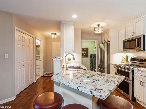 Stunning 2nd floor condo in an elevator building that offers a maintenance-free lifestyle. 3 spacious bedrooms & 2 baths w/ just under 1,700 sqft. of living space. Newly remodeled kitchen will amaze w/ custom cabinets, granite countertops & KitchenAid SS appliances. Owner's suite is enormous & comes w/ its own private, updated bath & walk-in closet. 2nd bedroom has direct access to 2nd remodeled bath. 3rd bedroom is presently used as an office w/ French door. In-unit laundry boasts tons of cabinet storage, sink & newer washer/dryer are included. Over-sized, attached 1-car garage with epoxy flooring & storage cabinets is ideal. Pet friendly community up to 25 pounds as per HOA. HVAC and water heater new 2020, newer HW floors & carpet. Amazing location with winding streets, outstanding landscaping, walking trails, direct access to bike trails & a relaxing pond offering sitting spots. Minutes to shopping and all that Munster has to offer, this is the perfect place to call home.