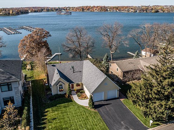 Spectacular sunsets and panoramic views of Prior Lake! 90' of hard to find gradual sloping lakeshore.This beautiful home offers 4 bedrooms, 3 baths, an updated kitchen, granite counter tops, lakeside master bedroom w/vaulted ceilings, a separate tub/shower and walk in closet, 2 gas fireplaces, lower level wet bar, screened porch, spacious deck overlooking main Upper Prior Lake, oversized 3 car garage with ample storage, lake irrigation, main level laundry new roof and gutters.