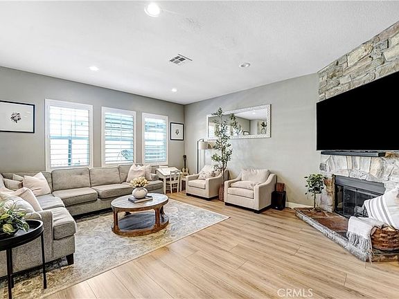 As you step through the charming front patio, you'll immediately feel the inviting ambiance. Inside, the spacious floor plan greets you with upgraded flooring, recessed lighting, custom-painted accent walls, and built-in shelving throughout—every detail carefully designed for both beauty and functionality.