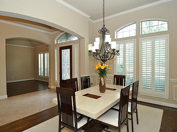Entry w/ 12-ft coffered ceilings opens to formals w/ hardwood floors. Formal living could be used as Study. Custom shutters throughout.Family room features a cast-stone fireplace and ceramic tile flooring. Kitchen has GE Profile stainless appliances, granite counters and 42-inch custom cabinets. Butler's pantry. Game room off breakfast room. Guest suite w/ full bath. Granite counters in master bath. Covered back patio and 3-car attached tandem garage. Generac natural gas generator installed 2016. Custom closets installed by the Closet Factory in the Master Bedroom and an additional bedroom. Four SafeRacks for storage installed in garage ceiling provides additional storage. Generac whole house natural gas generator. French drains on right & left sides of home from backyard to front yard. Ring doorbell, patio floodlight, side and garage.