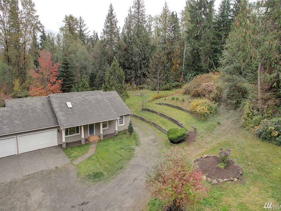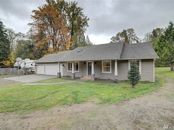 This beautifully remodeled, private Rambler home sits on 2.63 acres of lush, usable landscape, with high vaulted ceilings and an open & spacious layout. All new hardwood floors, cabinets, granite countertops, SS appliances, paint, trim, doors, & exterior siding. New furnace & water heater. One of the few properties in this area NOT on a well. RV parking & RV electrical hookup. Minutes from I9 and approx 1hr commute to Seattle & Redmond/Bellevue. No other property like it in the area - must see!
