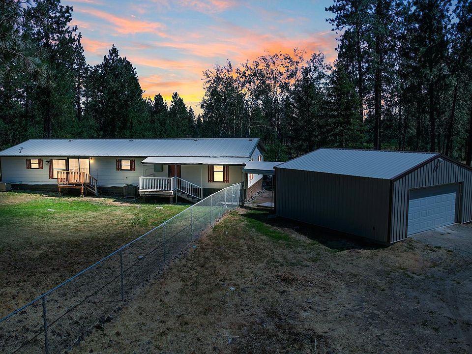 Welcome to your private retreat on 20+ acres, minutes from Spokane and complete with year-round pond. This 1990 home has been meticulously renovated and offers single level living, loads of upgrades, privacy, peace and quiet, and room to roam. The 3-bedroom, 2-bathroom home will amaze featuring a Primary Suite with a big bedroom, massive walk-in closet, private bath with double sinks, and slider to the deck. The other bedrooms each have double closets and the 2nd full bathroom is near by. The completely updated kitchen features new Stainless appliances and custom cabinetry, and opens to the living room with fireplace and slider onto the large deck overlooking the pond. All new flooring, cabinets, countertops, and deck. Electrical and plumbing has been updated too, and there is a generator that runs off propane to ensure you will always have power, even when the neighbors go dark. Gas heat and central A/C will keep you comfortable all year long.