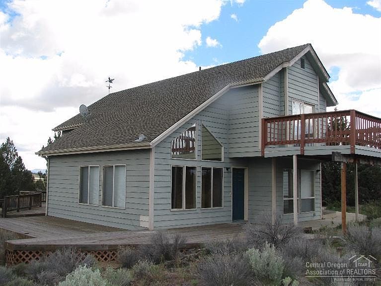 Fenced-gated drive leads to this stylish home on 5.8 acres +/-. Located on paved road near Brasada Ranch in Crook County. Stylish home features open vaulted living area w/ wood floors, windows all around for lovely views in every direction. Attached double garage plus other outbuildings such as barn/shop, storage shed, small greenhouse. Small seasonal canal flows along the roadway in front, very picturesque. Home is privately situated on level land up-hill away from the road with pretty views. Call now.