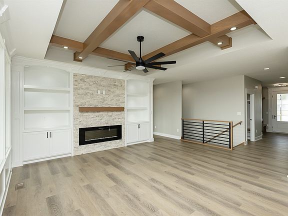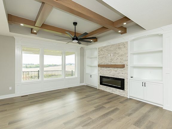 Finished walkout basementThree bathsOpen floor planFive bedroomsBuilt in bookshelves