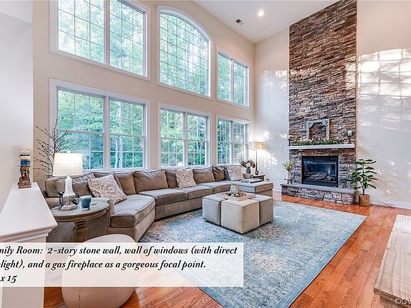 - Description: 2-story custom tile wall, fireplace, hw floor