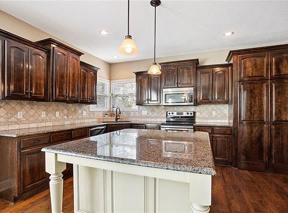The best value in the desirable Stonebridge Trails neighborhood! New roof! North facing on a cul-de-sac lot. Two story entry. Open kitchen with granite, walk-in hidden pantry, stainless steel appliances & large center island with seating. Hardwoods extended into dining room with wainscoting. Drop zone at the garage entrance. Large primary suite with huge walk-in closet complete, built-in shelving and adjoining laundry room!! Add future resale value with unfinished lower level with egress window and stubbed for a bath… ready to finish & customize for your ideal basement! Spacious deck & large flat back yard is fully fenced. Access to 4 neighborhood pools, walking trails, club house, fitness center & parks. Don’t miss some of the details including the arched doorways, bull nose corners & beautiful crown moldings. Instant equity here. Don’t miss it.