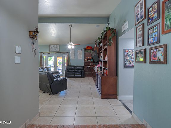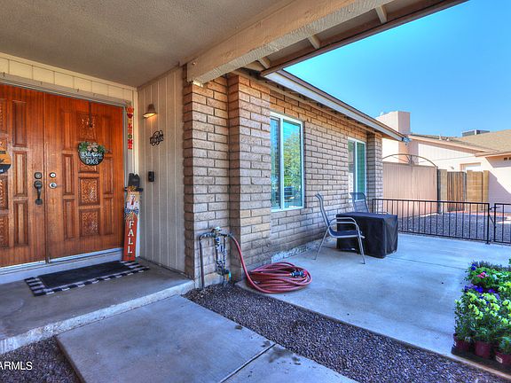 Beautiful North Phoenix home is tiled throughout with neutral colors freshly painted. Black SS appliances. The M/B has been updated with T & G ceiling, tiled walk-in shower & dual sinks. The hall bath has a new jetted-tub with tile & stone back, new vanity, mirror & fixtures. New fans, doors, windows & shutters in 3 front bedrooms. Recessed lighting throughout. Enjoy the backyard oasis year-round , this place is an outdoor entertainer's dream! Large, covered, pavered patio has stone-veneered bar, built-in BBQ, wine & beer fridges, kegerator, gas & wood firepits, it's own evap cooler! Sparkling pool surrounded by gorgeous landscape & colorful low voltage lighting. An RV slab, new RV gate with hook-ups & cleanouts. New AC, epoxied & painted garage, much more!