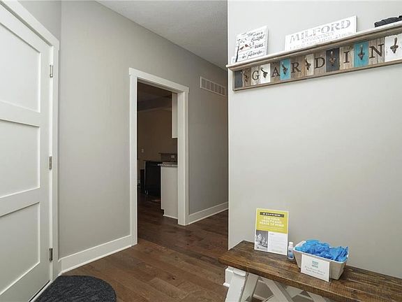 Want NEW, but don't have time to build? This is it! Only2 years young w/3 bdrms, 2.1 baths, office, full basement & 2 car garage. Wood flrs on entire 1st floor, polished, granite counter tops & breakfast bar, BLACK S/S appliances & all stay including fridge washer & dryer! Custom blinds, iron spindles, decorator stair carpet, WHITE cabinets, wlk-in pantry, quartz vanities, laundry on bdrm level, oversize master ste, sitting area & mstr bath w/tile wlk-in shower & dual shower heads. Backs to trees &close to schools!