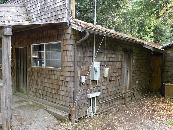 Great opportunity to set up shop in Whitethorne, there is a large community in the area that would support the re-establishment of a convenience store in the area. Zoned RCC (Rural Community Center). Structure offers a 600 sf store space fronting the Briceland Rd with a private 1,000 sf, 2-bed 1-bath attached residence with patio area fronting Harris Creek, large back yard for garden area. 2 each 160 sf storage sheds. Store interior gutted, damage/hole to roof in store area caused by fallen tree branch which has been tarped and protected. Age & Sq Ft per County Assessor, Buyer to verify.