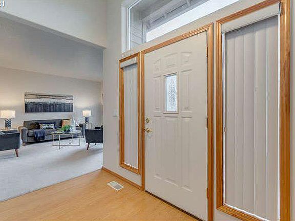 Beautifully maintained one level with high ceilings, open Living Room and Dining Room floor plan. Kitchen with built in oven and microwave, open to the generous Family Room with gas fireplace, slider to the back yard that backs to a green space for added privacy. Master Bedroom with bathroom, double sinks, jetted bathtub and shower. Two additional generous size bedrooms. New deck in 2021. HES 5