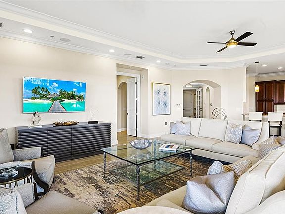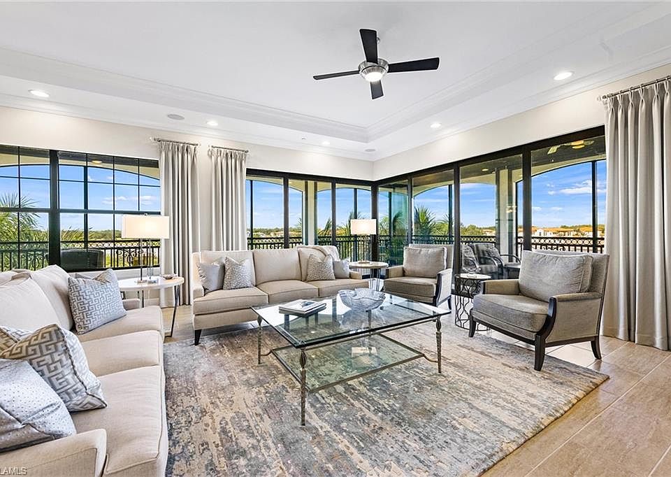 Furnished and move in ready!! Enjoy stunning sunsets and unobstructed panoramic views from this rarely available top-floor Carrara at Talis Park. Designer upgrades and finishes throughout. The penthouse-style floor plan offers maintenance-free living that feels like a single-family home. Highly upgraded with custom decor and draperies, built-in dry bar, custom closet system, luxuriously upgraded powder room, Kinetico water system with WaterCop, Storm Smart storm screens, newer refrigerator and AC. Two under-building parking spaces and extra storage complete this property. Carrara has its own community pool and grills, separate from the clubhouse. Talis Park's golf course was designed by Greg Norman and Pete Dye and is ranked by Golf Digest as one of Florida's top 20 courses. Within walking distance to the driving range and Vyne House. The club offers a pilates/yoga studio, Core Fitness Center & Esprit Spa, plus Fiona’s Market Café! Mandatory sports membership is $37,000, full golf membership is optional.