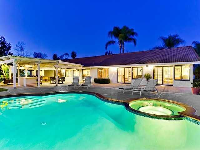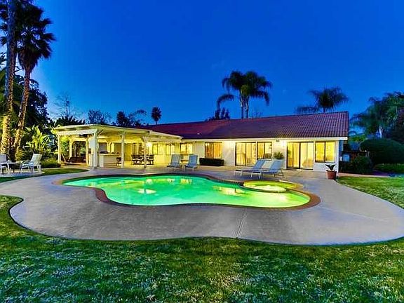 This is the perfect home for anyone who enjoys privacy & ample outside space. The Master Suite is separated from the other bedrooms in the house which include a "wing" on the opposite side with its own den/game room & office area. Other features include vaulted ceilings, large stone fireplace in family room & gourmet kitchen with granite counters & SS appliances. A tropical-themed backyard has BBQ area, pool & spa, sand volleyball court & large covered patio area. Side yard has RV/boat/trailer parking.
