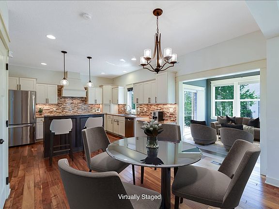 Welcome to your new home! Move in ready 2 sty walkout with many upgrades! Quiet culdesac. Newly painted exterior. Fenced backyard. 2269 fin ft main 2 floors - does not reflect Sun Room added in 2021 (approx. 144 ft.) Open entry. Flex room - office or dining room. Beautiful open kitchen with island, upgraded appliances, granite countertops, pantry. Year around Sun Room. Southern facing family room w/ fprlc & large windows. Kiddos and animal friendly wood flrs. 4 bedrooms 4 bathrms, 2nd floor laundry rm. Freshly painted walls on main and upper levels. Finished walkout lower level gives you approx. 943 ft of entertaining/fun living spaces: Theater room, wet bar w/ concrete countertops & 3/4 bath. 2 blocks from Shuler Elem. Close to parks and trails. Furnished rooms photos are virtually staged.